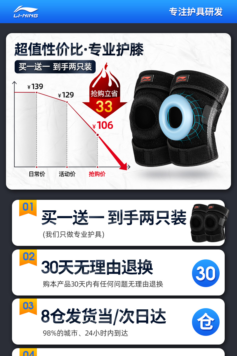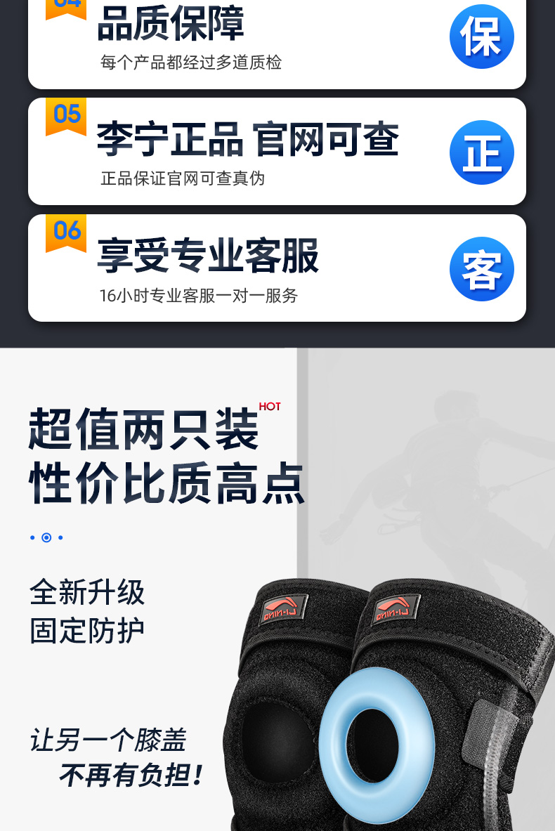 李宁护膝运动半月板跑步篮球专用男女保暖膝盖护具髌骨羽毛球足球