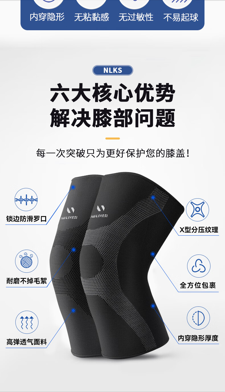 耐力克斯护膝运动男膝盖保暖关节内用男士跑步羽毛球专用篮球女士