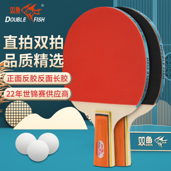 双鱼(DOUBLEFISH)官方授权乒乓球拍套装双面反胶高弹力胶皮